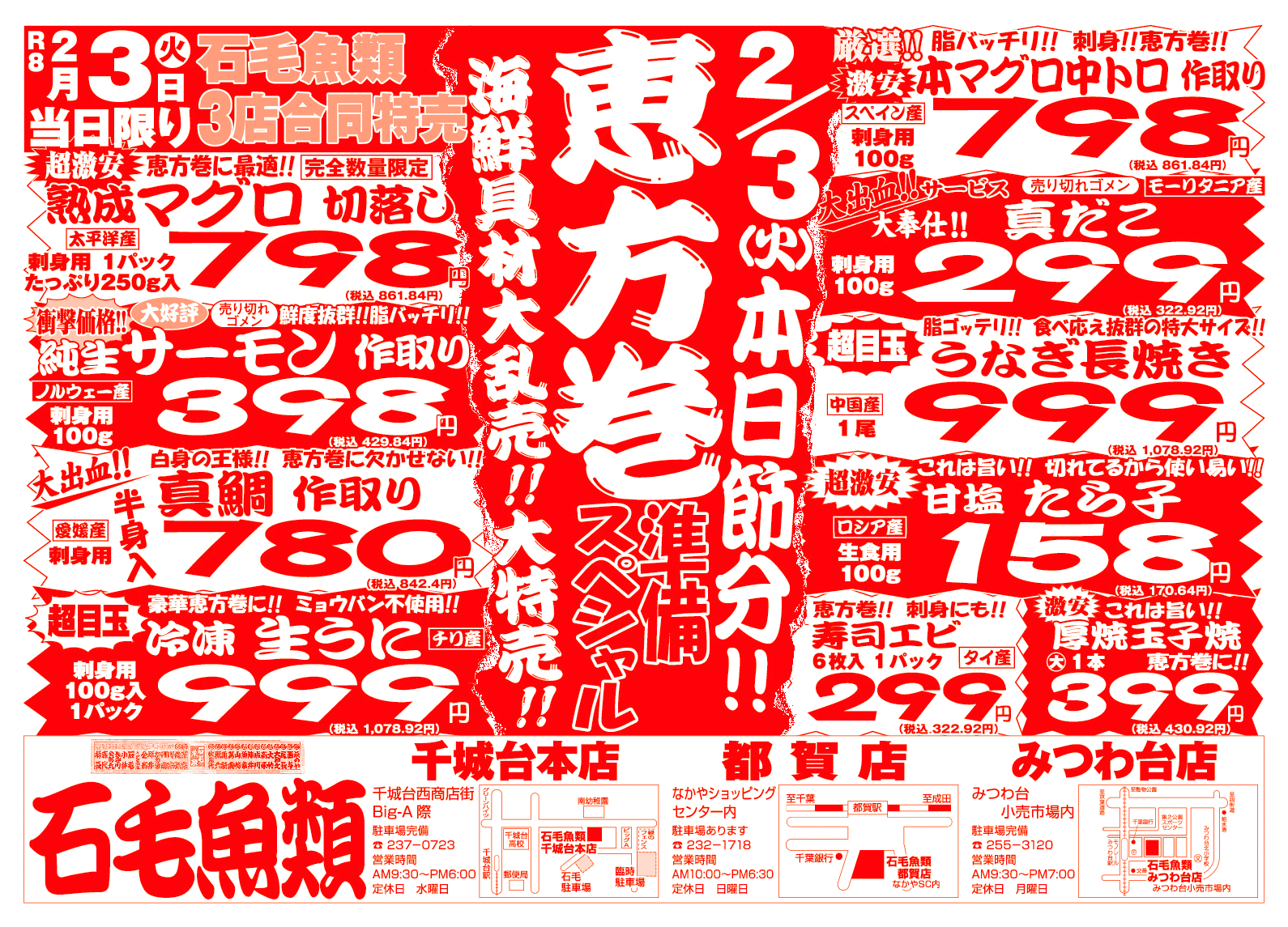 石毛魚類は銚子港直送の高級鮮魚を扱う、千葉の鮮魚店です